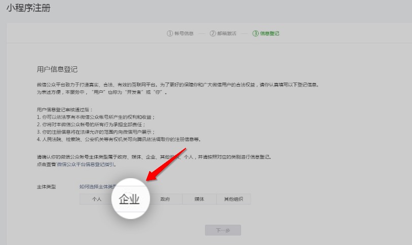 注册企业版小程序的前提:工作室拥有营业执照,其中: