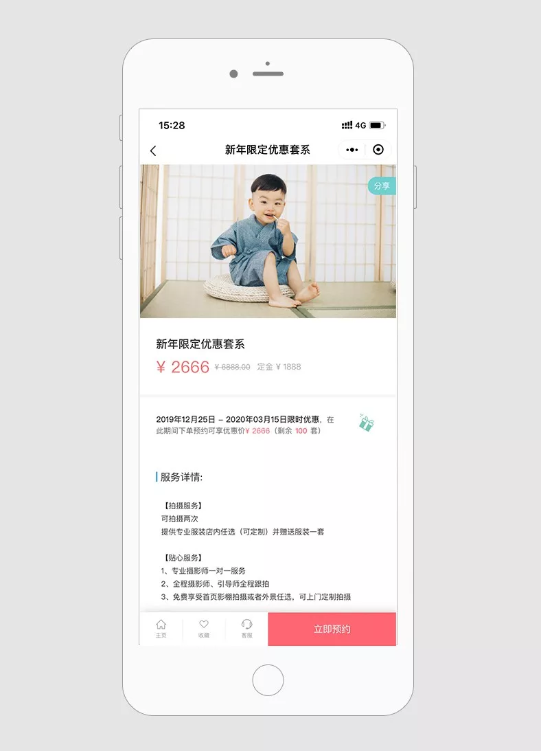 “新年【儿童】限定优惠套系,原价6888,现价仅2666,数量有限,赶紧预定为宝宝新的一年留下新的回忆吧~ 点击预约:https://w.url.cn/s/AHyLQ9m”