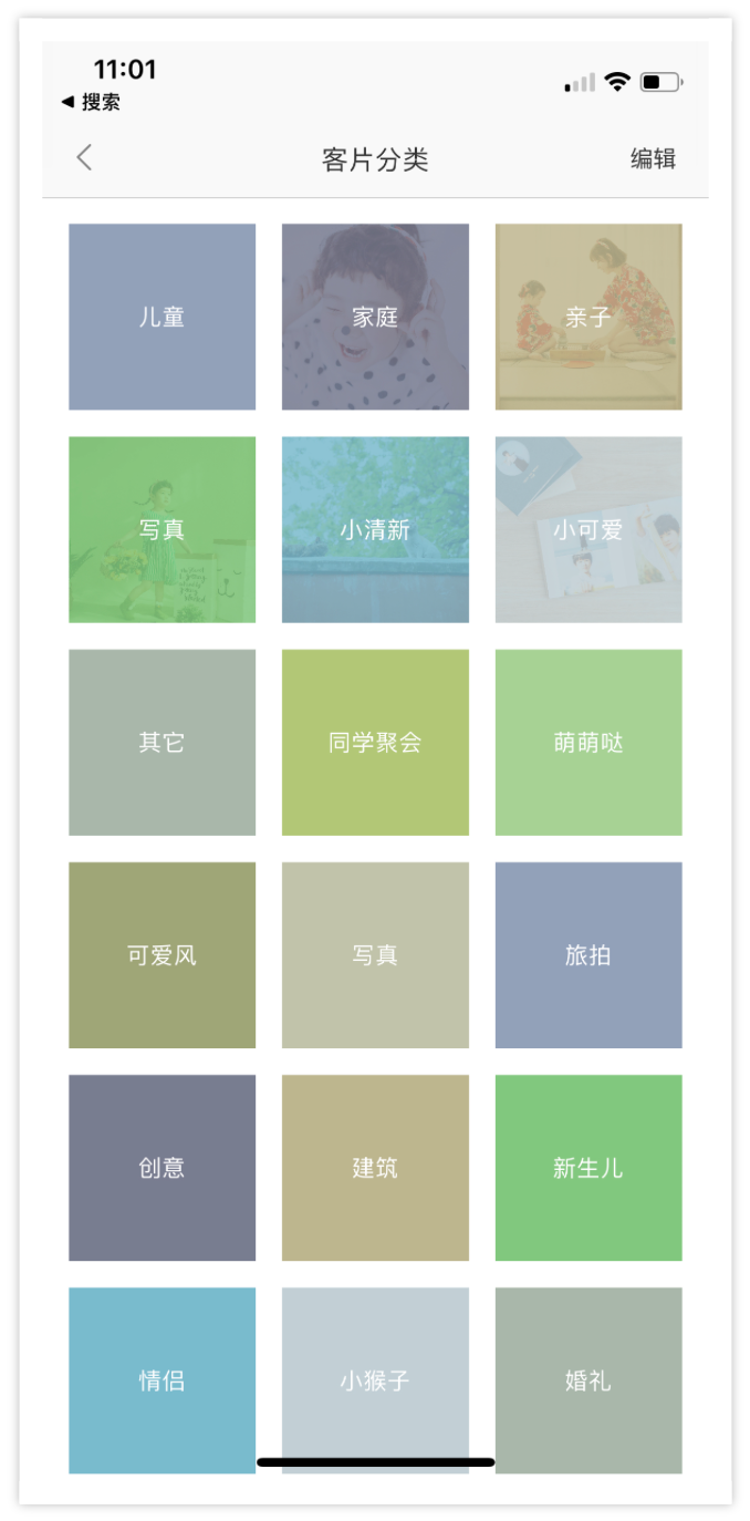 上文中的“莫奈花园风”等为客片分类。可前往「客片」-「右上角」-「编辑分类」进行修改和设置。注:目前分类封面仅在Remix和Workshop模板上生效。