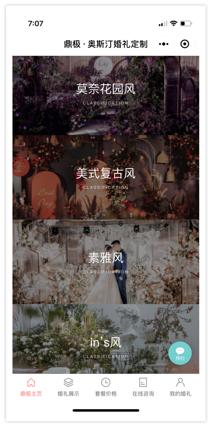 近期非常多婚庆、婚礼策划公司咨询小程序的使用问题。但婚庆在使用技巧上和摄影工作室有一些区别,我们以其中的“鼎极”作为案例,示范一下。