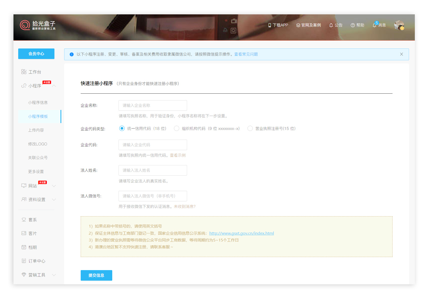 总的来说,我们是个傻瓜软件,如果说有例外,那一定非「注册企业小程序」莫属;