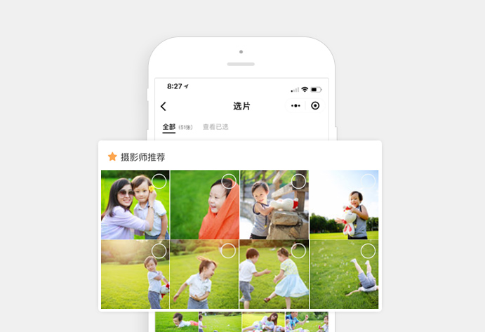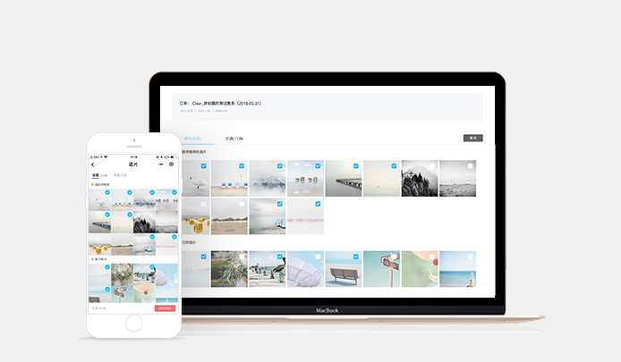 在线选片全新升级,为您的客户提供手机微信电脑全平台的在线选片体验,无须下载APP,小程序即可选片。