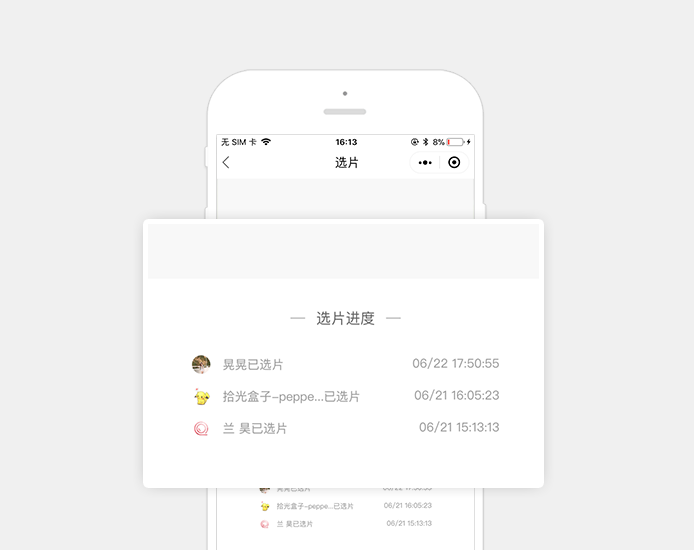 新版选片系统支持多人同时选片,可以在选片结果页面看到每个人的选片进度