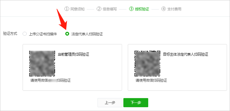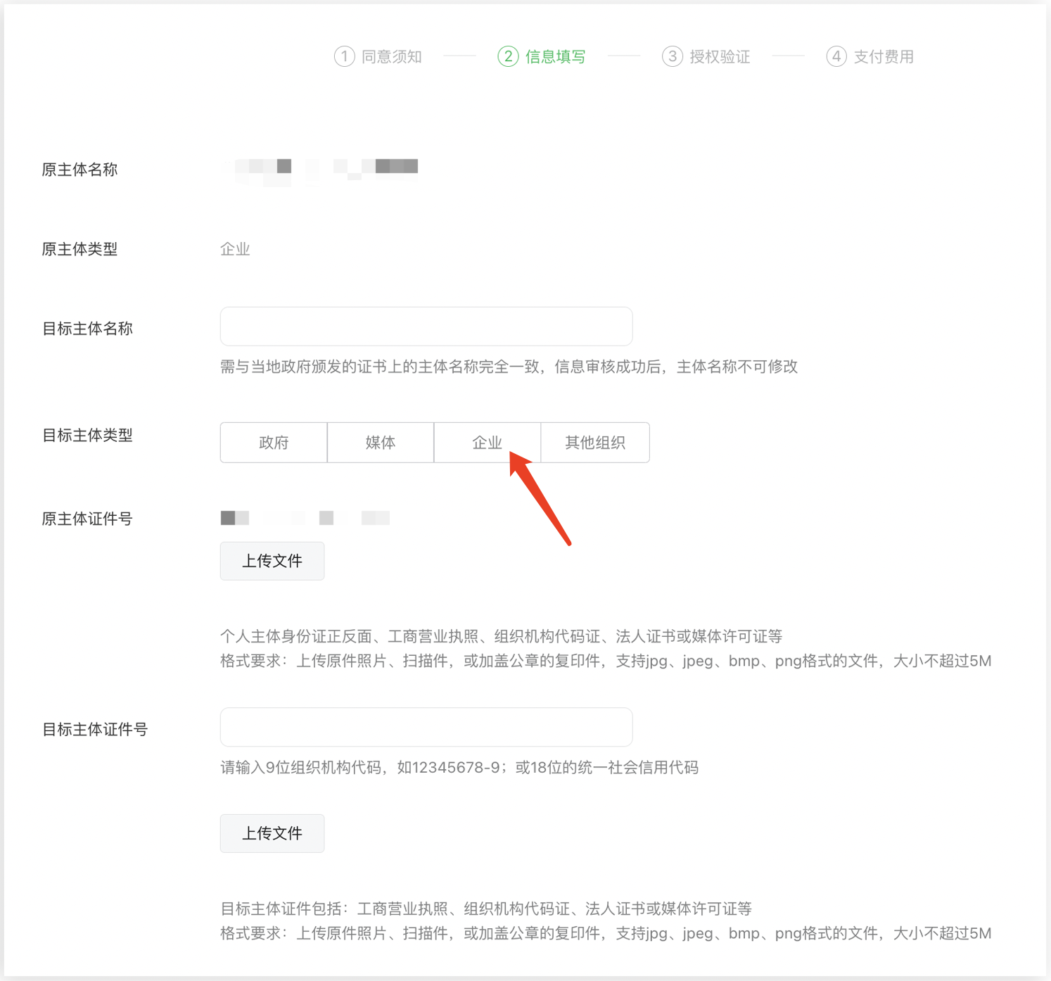 若原主体已注销,则需选择“上传公证书扫描件”方式,可点击《微信官方变更申请函指引》了解更多。