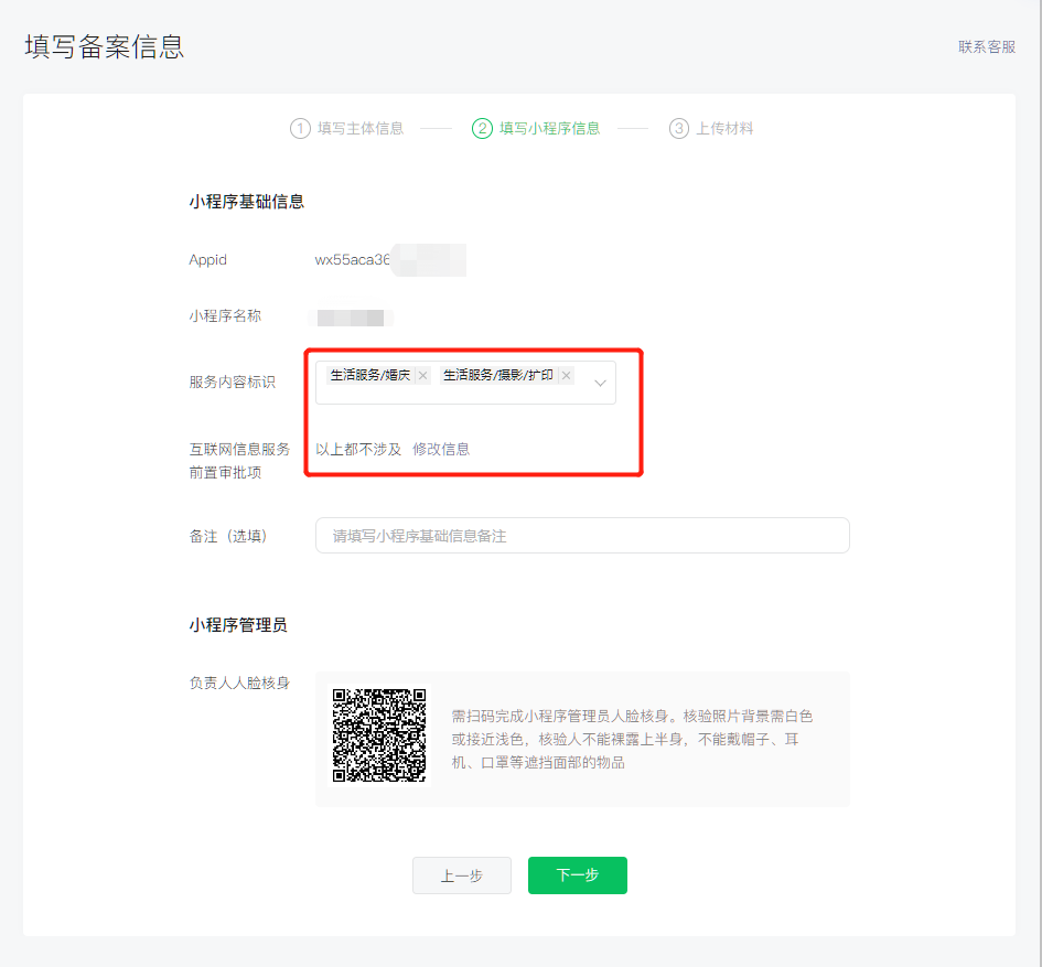四、填写小程序信息