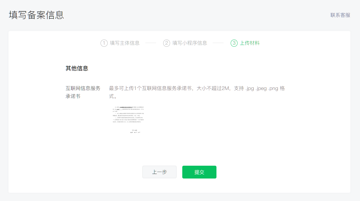 查看并提交“互联网信息服务承诺书”