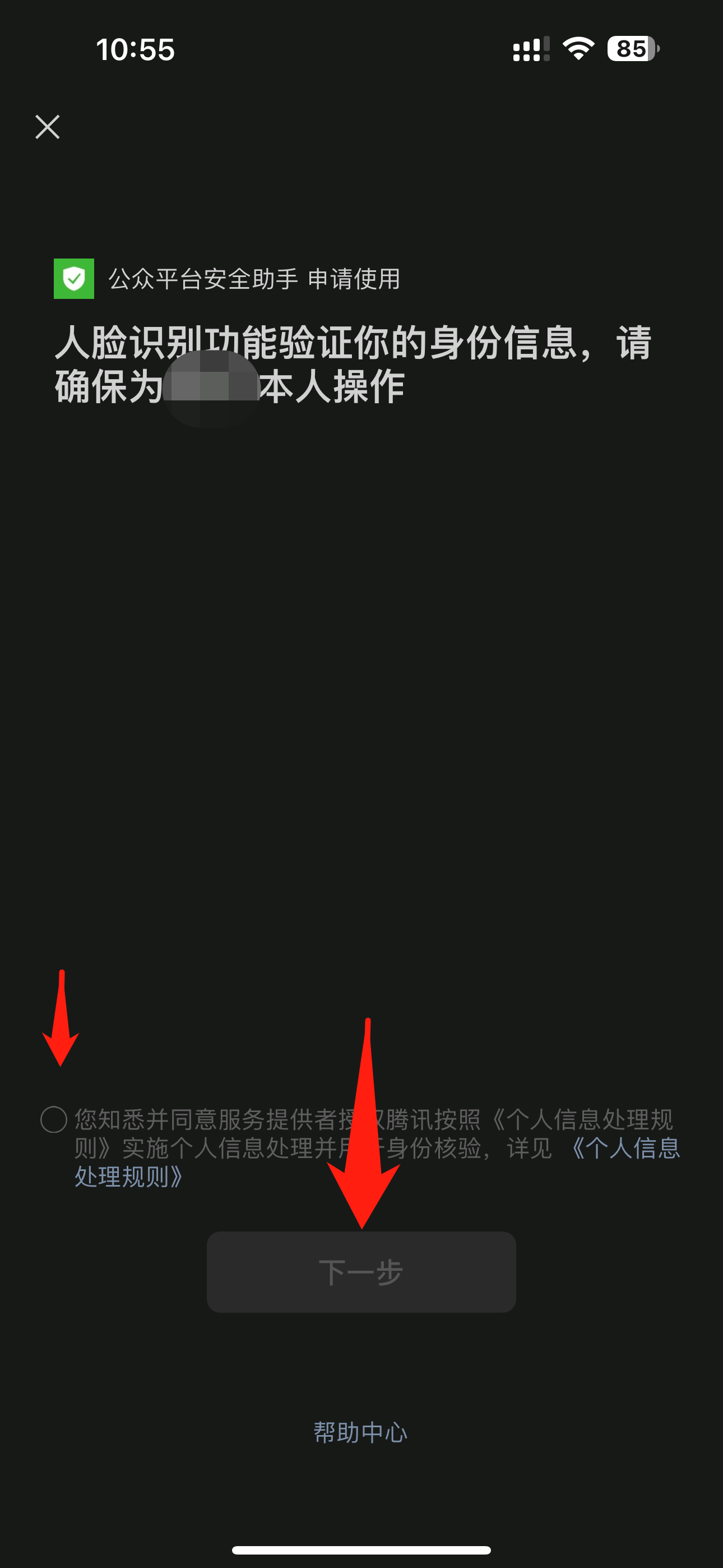 负责人需在手机微信中进行人脸认证,注意校验照片背景需白色或接近浅色