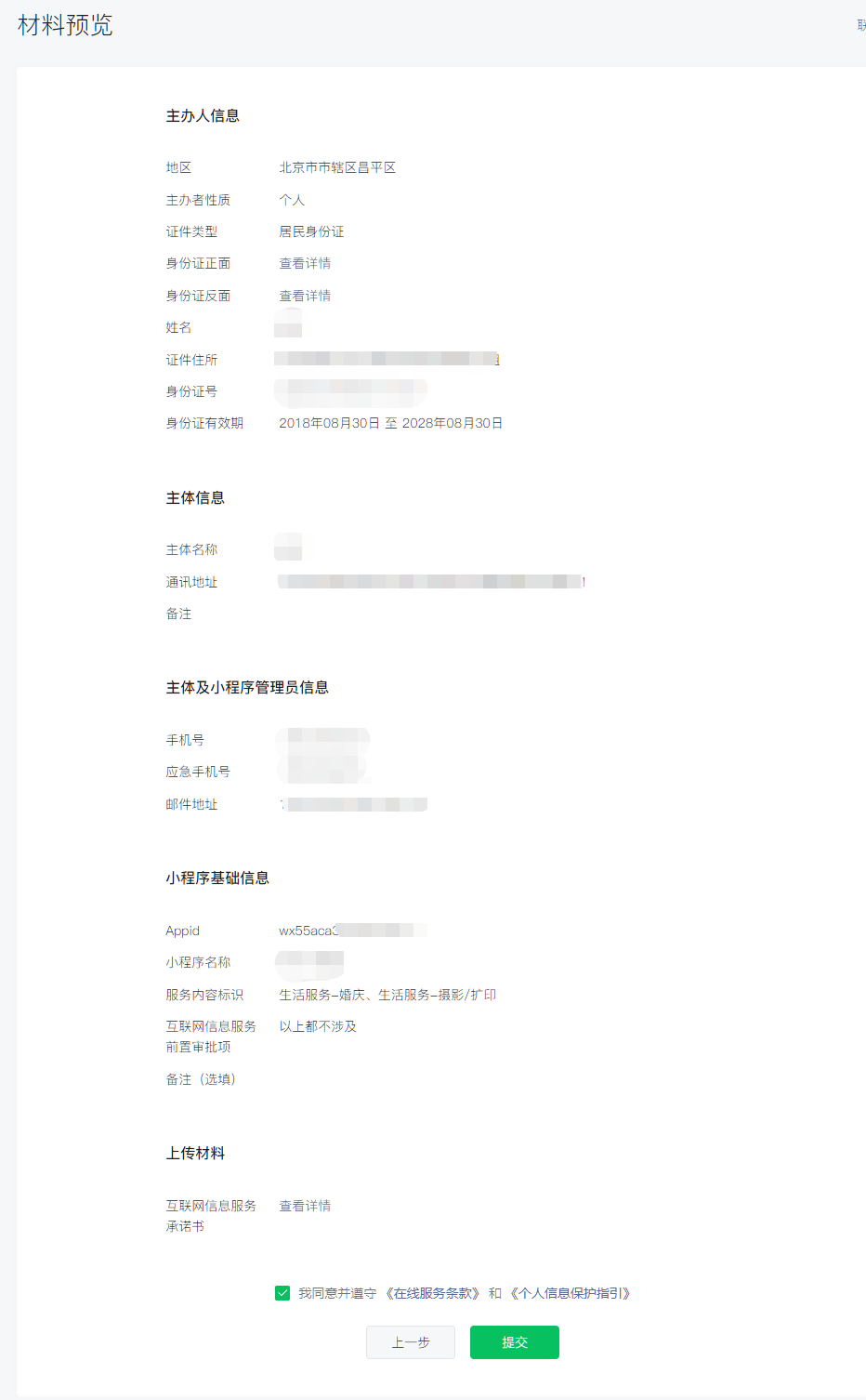 查看信息是否正确,若信息无误,请点击“提交”