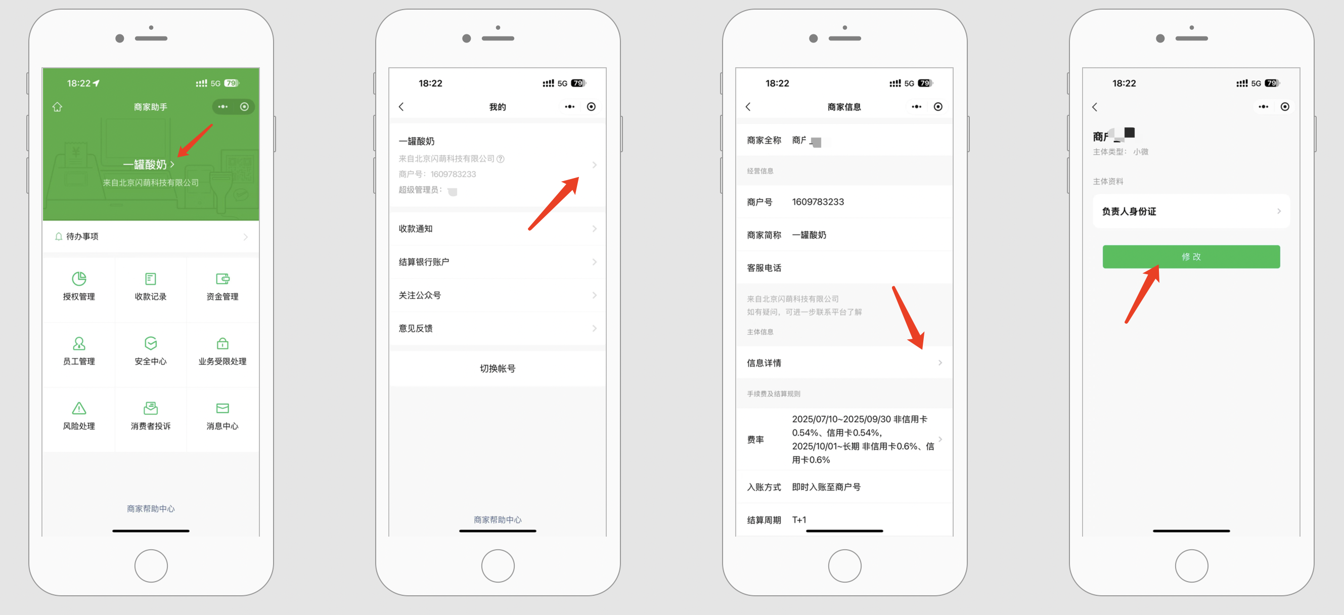 • 修改账户:可以在“账户中心”-“商户信息”中修改相关信息。