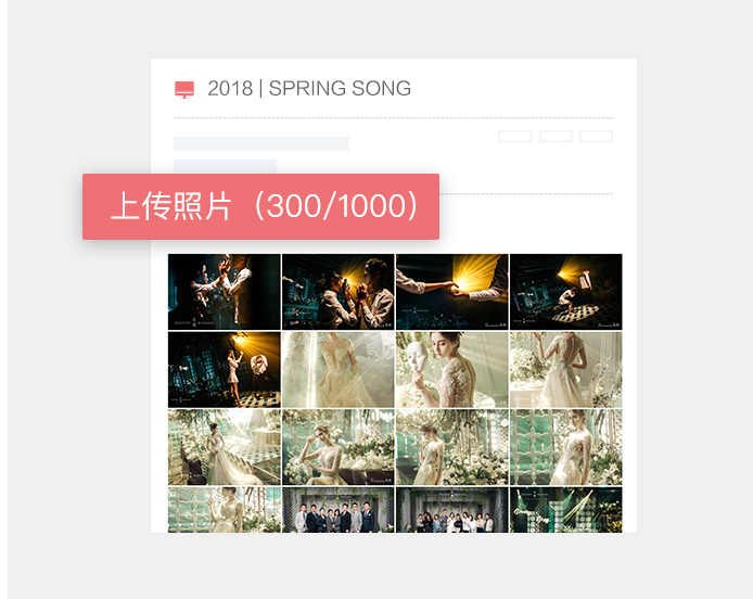 支持上传300张、1000张图片上传,实时展示和下载功能,客户随时下载自己图片,用来发朋友圈、微博等,每一次传播都是为你宣传
