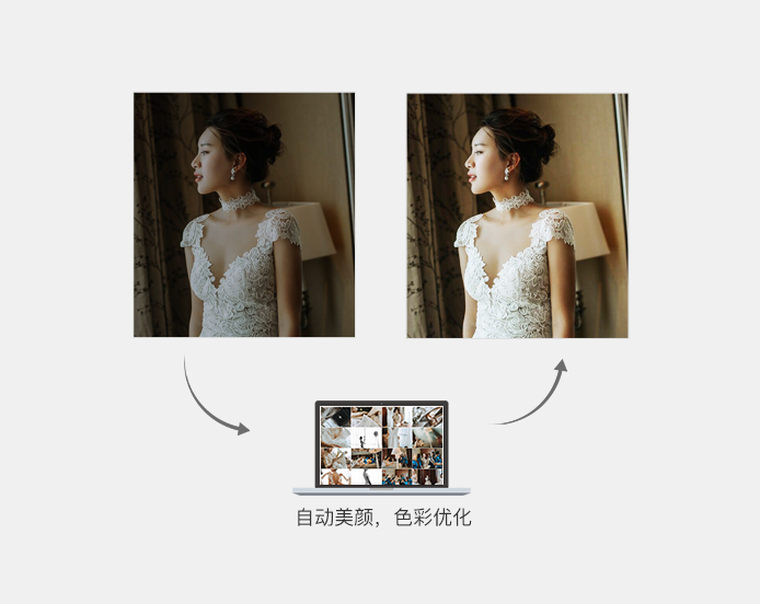 上传图片支持自动美颜,一键拼图等功能,更容易带来客户传播