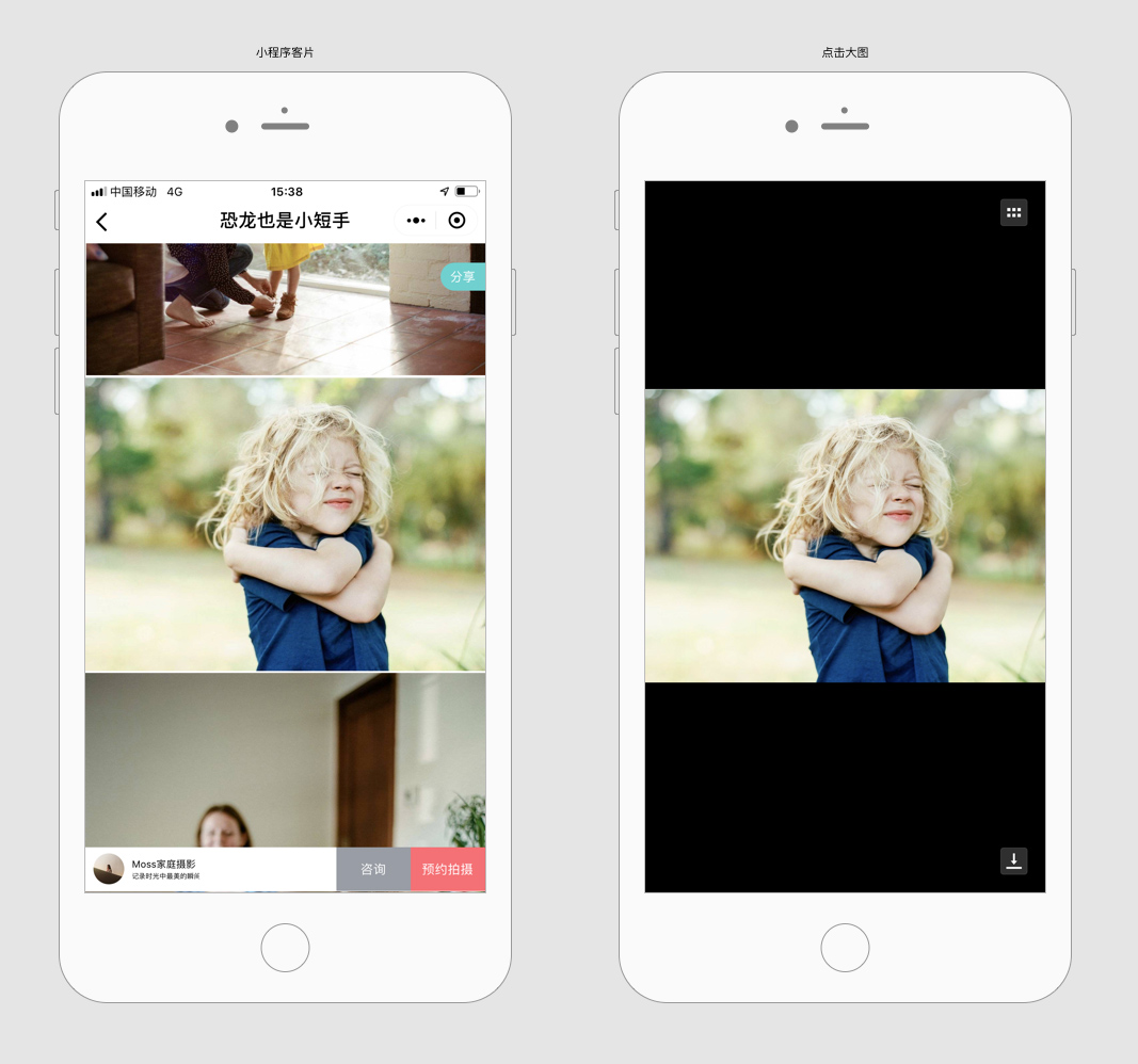 客片查看大图时,去除了自动旋转,客户左右滑动即可浏览大图,提升客户体验