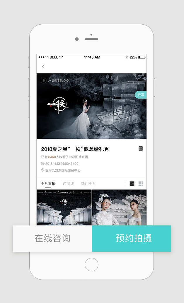 比如:分别开启或关闭[在线咨询]、[预约拍摄]按钮