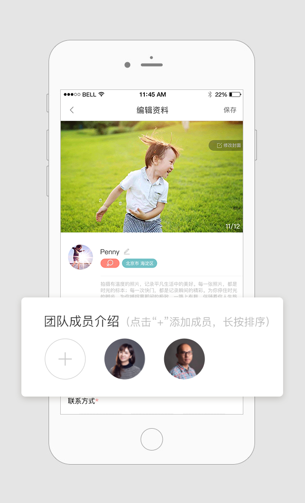 现在,你可以在APP-[个人资料]添加团队成员介绍~