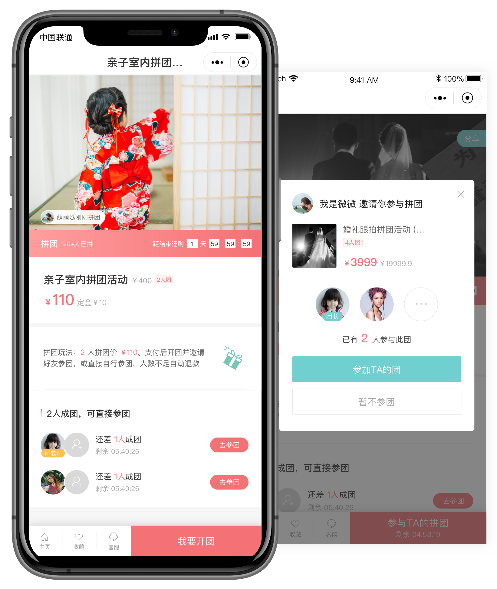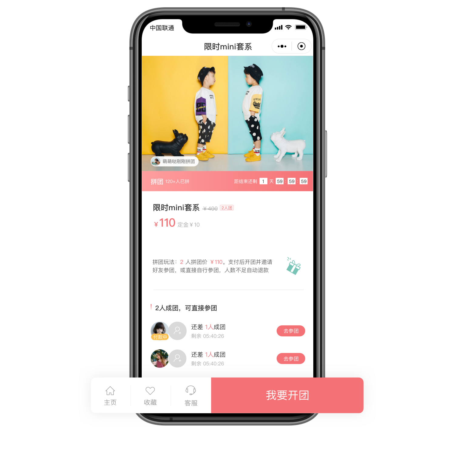 创建拼团活动,利用客户自发的分享传播效应,为工作室带来更多的单量~